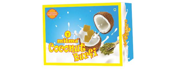 Coconut Burfi is a new product made from pure cow milk and coconut. The product is special for its unique combination of Milma Milk and coconut without losing the goodness of both . It is available in 150g packing.